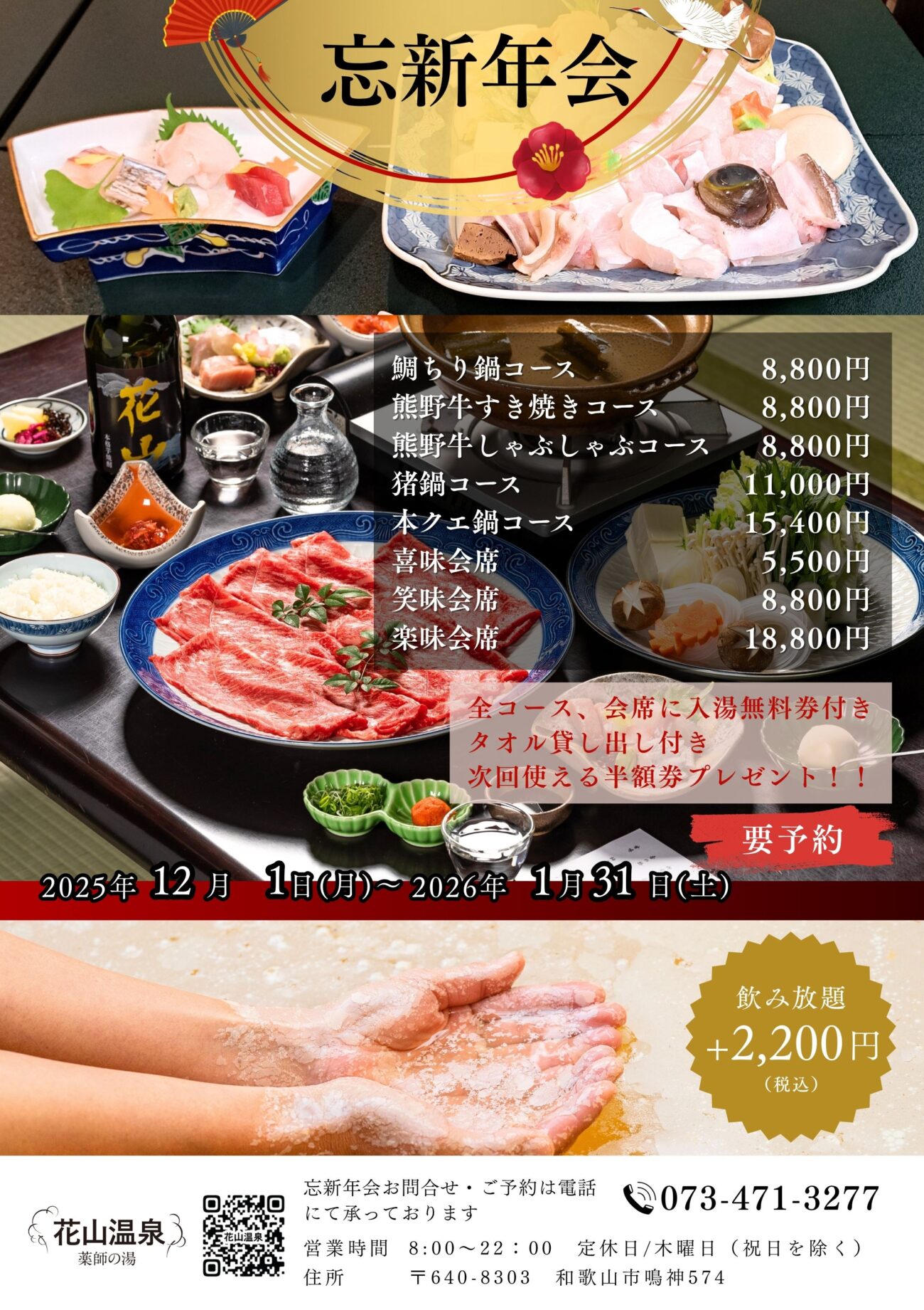 当日入湯無料、タオル付!