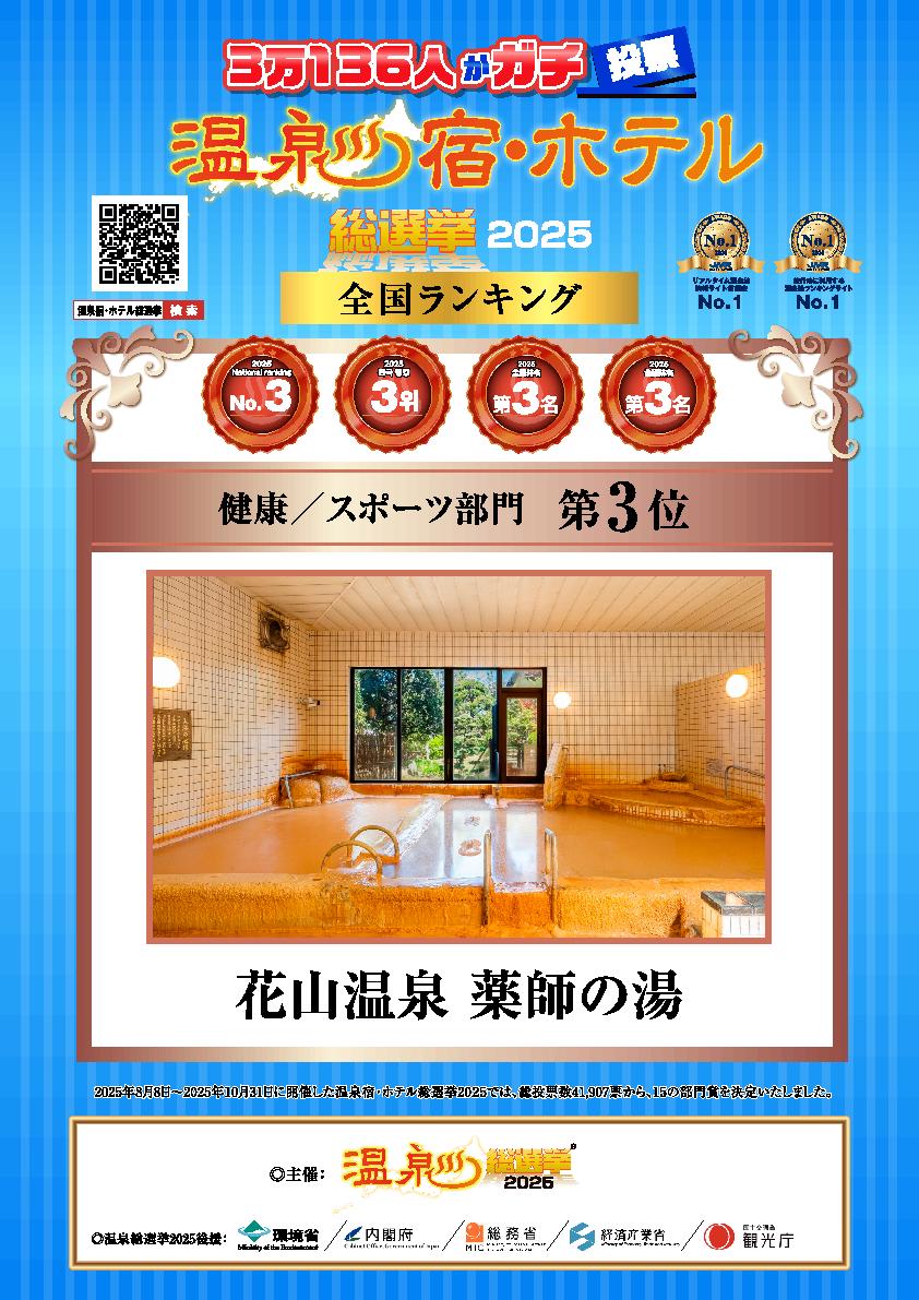 この度、温泉総選挙2025 全国エリアの健康/スポーツ部門 3位!