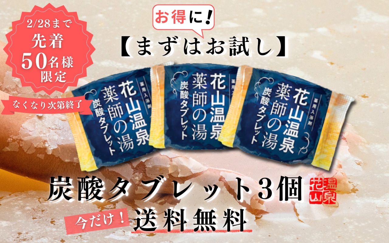 【先着50名様限定 2026/2/28(土)まで!】 「花山温泉 薬師の湯」炭酸タブレット3個お試し用が送料無料! ※LINE登録でさらに1個プレゼントキャンペーン中!